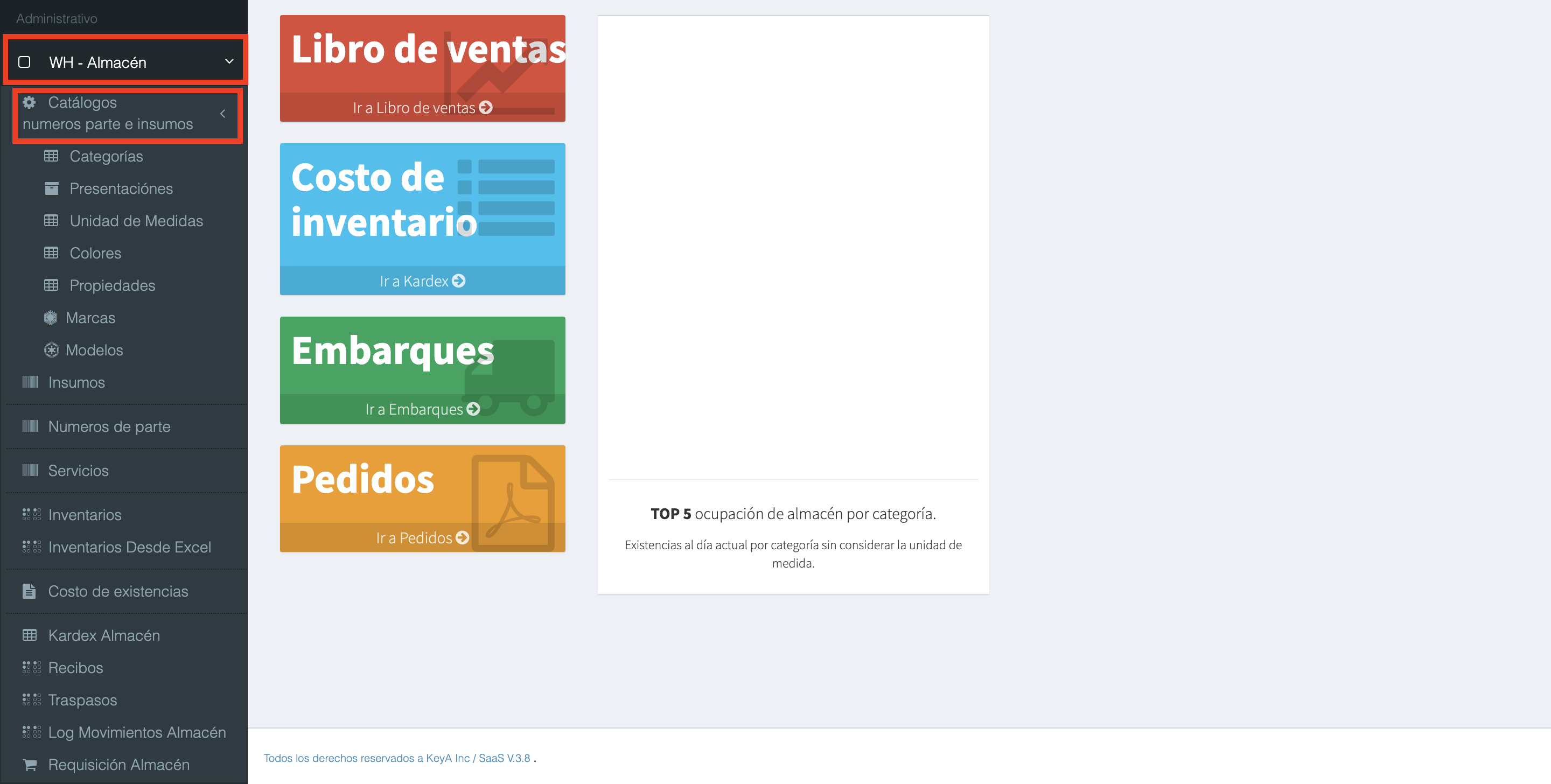 Al darle click en Catálogos numeros parte e insumos, se nos abrirá un SubMenú. A continuación explicaremos cada una de estas opciones.