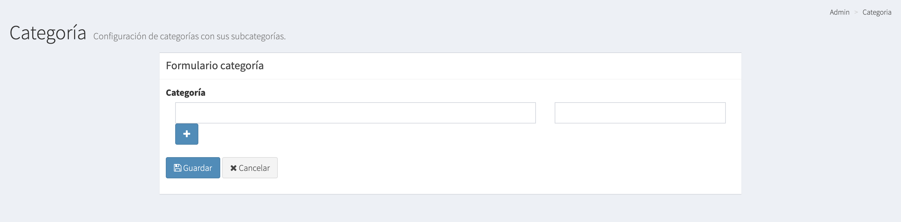 3.- Ingresaremos el nombre de la categoría y procederemos a guardar. También podemos agregar una SubCategoria, o una SubSubCategoría inclusive si asi lo queremos dandole click al botón azul que se representa así -> +