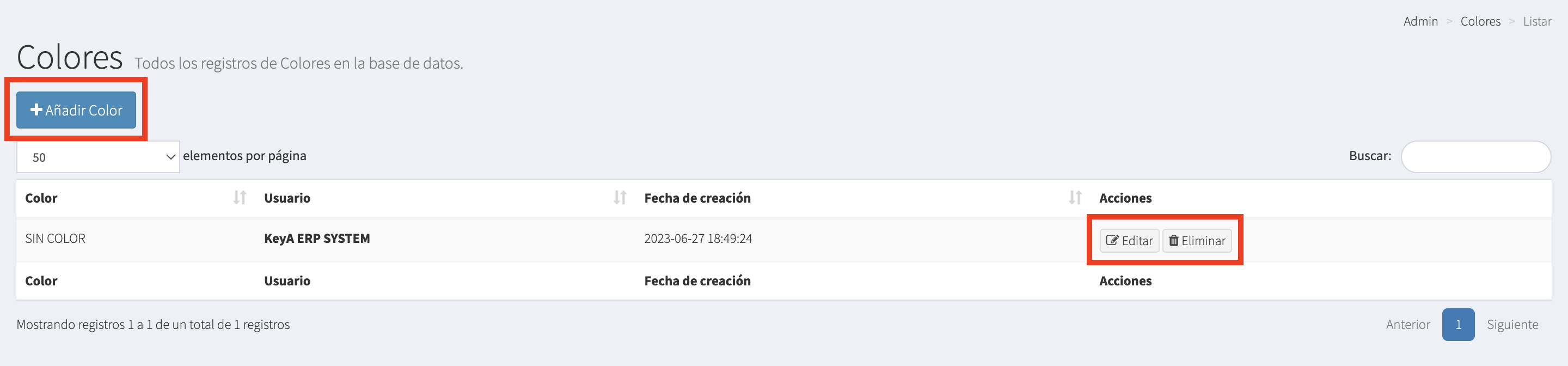 2.- Para dar de alta un nuevo Color, tenemos que darle click al botón + Añadir Color y se nos abrirá la siguiente pantalla.