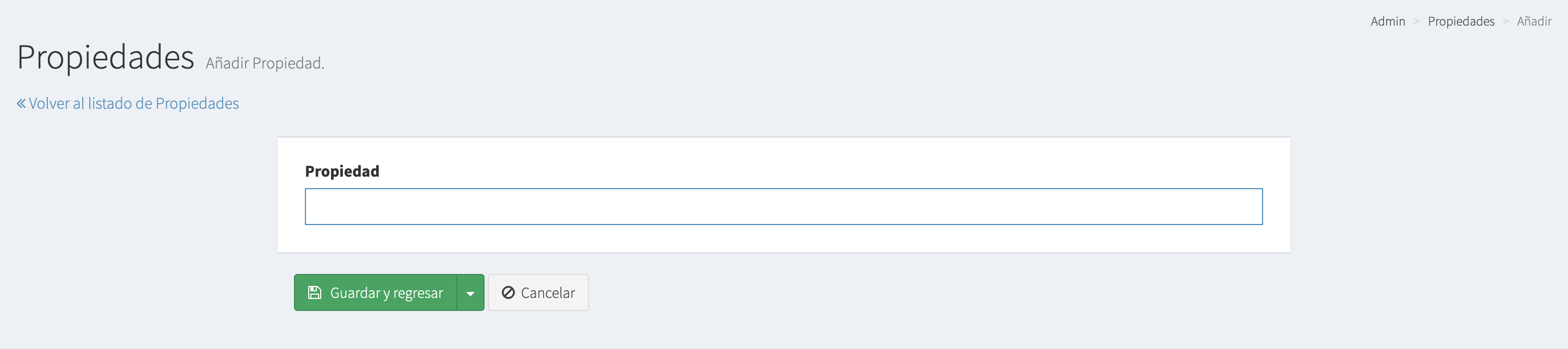 3.- Ingresaremos el nombre de la propiedad a crear. Después, solo le daremos click al botón guardar.