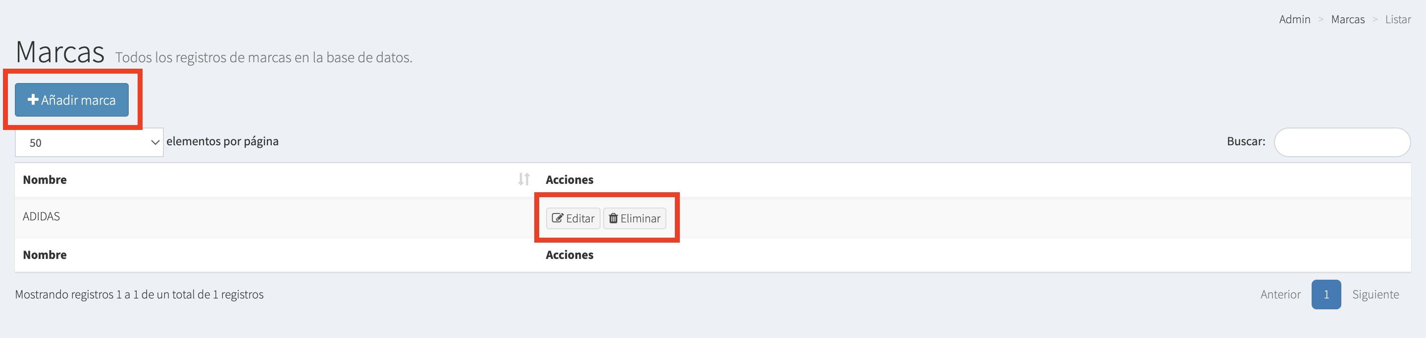 b) Eliminar - Esta opción te permite eliminar la marca.