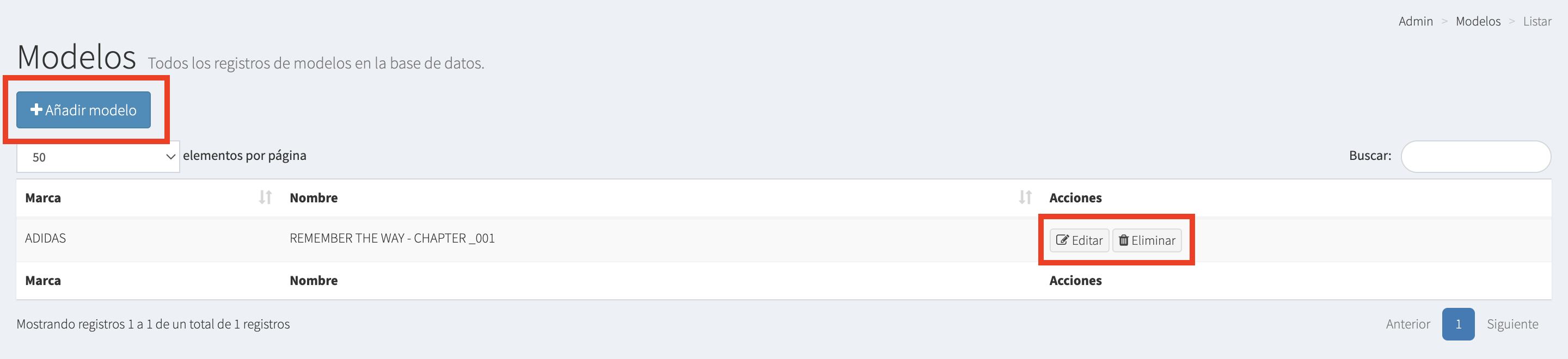 b) Eliminar - Esta opción te permite eliminar el modelo.